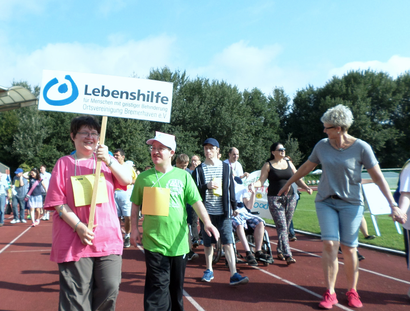Nachdem die Helfer von Lars Müller Amtsleiter für Menschen mit Behinderung", Uwe Parpart Dezernent für Menschen mit Behinderung", begrüßt wurden, spielte auch schon der Spielmannszug Surheide auf und der Aufmarsch, zweimal um die Bahn des Stadions begann.